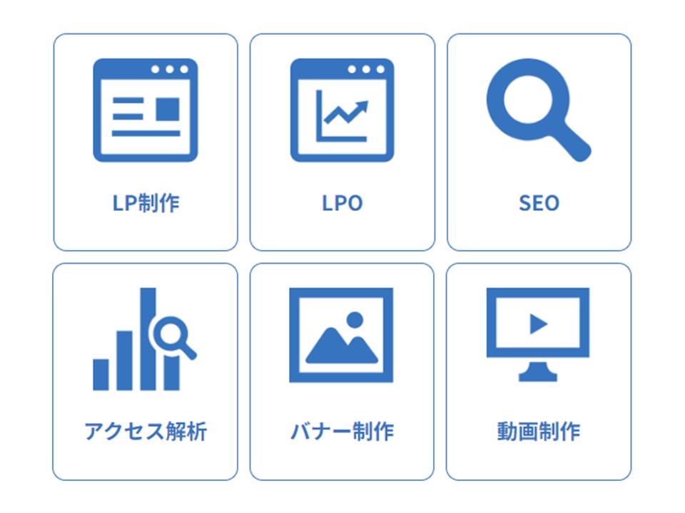 近年は管理画面上の操作だけで最大限の成果を上げることが困難であるため、LP制作やLPO、バナー・動画制作などの取り組みも行っています。